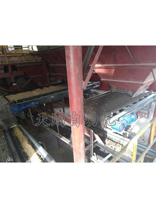 皮帶秤稱重橋架安裝于輸送機(jī)架上,當(dāng)物料經(jīng)過時(shí),計(jì)量托輥檢測到皮帶機(jī)上的物料重量通過杠桿作用于稱重傳感器,產(chǎn)生一個(gè)正比于皮帶載荷的電壓信號。在皮帶秤上有一個(gè)稱重傳感器裝在稱重橋架上,工作時(shí),將檢測到皮帶上的物料重量送入稱重儀表,同時(shí)由測速傳感器皮帶輸送機(jī)的速度信號也送入稱重儀表,儀表將速度信號與稱重信號進(jìn)行積分處理,得到瞬時(shí)流量及累計(jì)量。速度傳感器直接連在大直徑測速滾筒上,提供一系列脈沖,每個(gè)脈沖表示一個(gè)皮帶運(yùn)動(dòng)單元,脈沖的頻率正比于帶速度。稱重儀表從稱重傳感器和速度傳感器接收信號,通過積分運(yùn)算得出一個(gè)瞬時(shí)流量值和累積重量值,并分別顯示出來。