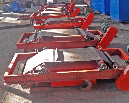 一、懸掛除鐵器正確接線調(diào)試后即可投入使用,操作步驟如下∶ 1、合上隔離開(kāi)關(guān)。 2、將遠(yuǎn)近控轉(zhuǎn)換開(kāi)關(guān)旋向近控或遠(yuǎn)控。 3、按壓按鈕SB6小車左行,按鈕SB7小車右行,指示燈亮。 4、檢查小車電機(jī)運(yùn)行狀況確認(rèn)運(yùn)轉(zhuǎn)正常。 5、近程控制時(shí),按鈕SB2為給磁啟動(dòng)按鈕,勵(lì)磁1投入,SB3起動(dòng)按鈕,勵(lì)磁2投入,磁指示燈亮,SB1為近程停止按鈕;遠(yuǎn)程控制時(shí),按鈕SB4為給磁啟動(dòng)按鈕,勵(lì)磁1入,SB5啟動(dòng)按鈕,投入勵(lì)磁2,給磁指示燈亮起,SB8是為近程的停止按鈕。 6、檢查電壓表及電流表指示應(yīng)正常。 懸掛除鐵器需要卸鐵時(shí),將除鐵設(shè)備移到卸鐵箱的上方,停止勵(lì)磁,鐵磁性類的雜物自行落于卸鐵箱里,完成了除鐵卸鐵的工作。 二、設(shè)備停止操作步驟如下∶ 1、按SB1或SB8勵(lì)磁停止 2、如長(zhǎng)時(shí)間不運(yùn)行應(yīng)分?jǐn)喔綦x開(kāi)關(guān) 三、設(shè)備檢修時(shí)應(yīng)切斷電源,嚴(yán)禁帶電打開(kāi)接線腔蓋。具體操作如下∶ 1、小車走行按鈕復(fù)位停止,按給磁停止按鈕,停止設(shè)備運(yùn)行。 2、分?jǐn)喔綦x開(kāi)關(guān)。 3、切斷上一階層電源。 4、打開(kāi)控制箱門及接線腔蓋。 5、進(jìn)行正常檢修工作。 懸掛除鐵器吊掛式安裝。通過(guò)吊耳2吊在物料運(yùn)輸皮帶的上方,金屬探測(cè)儀設(shè)置在吊掛著的強(qiáng)磁除鐵器的前方。當(dāng)物料中有較大或是較長(zhǎng)鐵磁性類的雜物,隨運(yùn)輸皮帶通過(guò)金屬探測(cè)儀時(shí),金屬探測(cè)儀將信號(hào)發(fā)送到電控箱,電控箱通過(guò)接線盒控制強(qiáng)磁除鐵器雙線圈同時(shí)工作。該除鐵器的磁場(chǎng)強(qiáng)度與范圍增加,吸附能力達(dá)到越大,吸附較大或者是較長(zhǎng)的鐵磁性類雜物之后扔入集鐵箱。既而完成了清理出較大或較長(zhǎng)的鐵磁性雜物的工作。清理了較大或較長(zhǎng)的鐵磁性雜物后,電控箱通過(guò)接線盒控制懸掛除鐵器恢復(fù)單線圈進(jìn)行工作。如此往復(fù)循環(huán),繼而達(dá)到了即清理出較大或較長(zhǎng)的鐵磁性雜物又節(jié)約能源的目的。